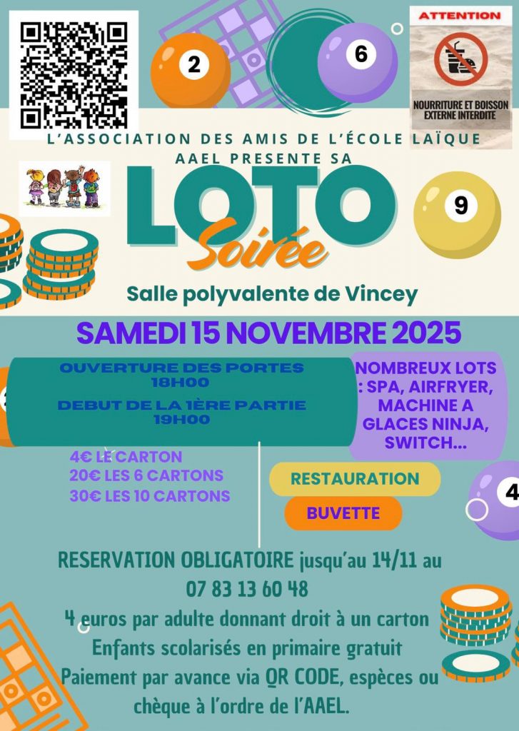 FacebookTwitterPinterest le 15.11.2025, au profit des enfants de l’école du centre de Vincey FacebookTwitterPinterest Lire la suite... Loto AAEL